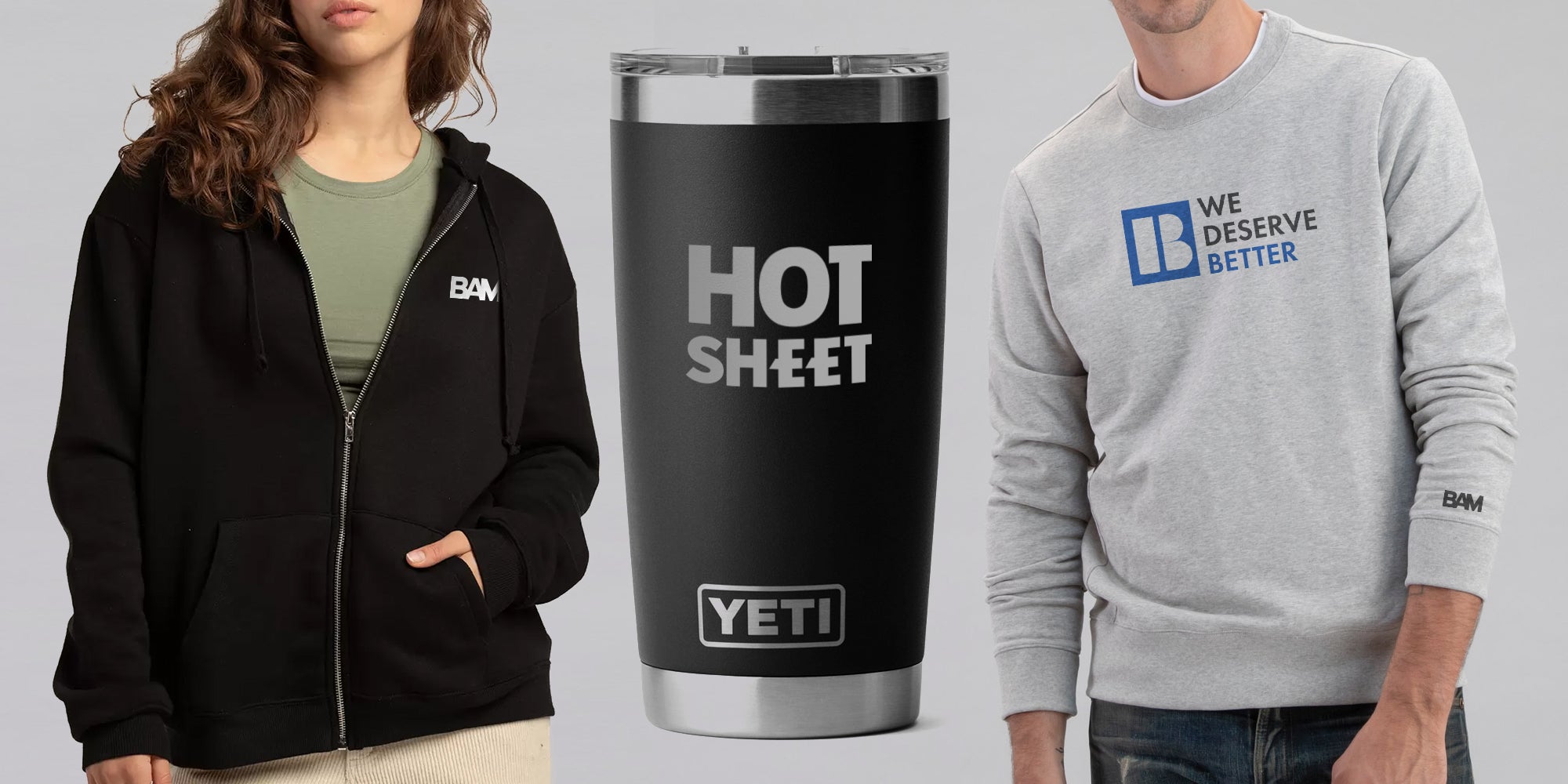 BAM Embroidered Zip Up Hoodie - Heather Grey